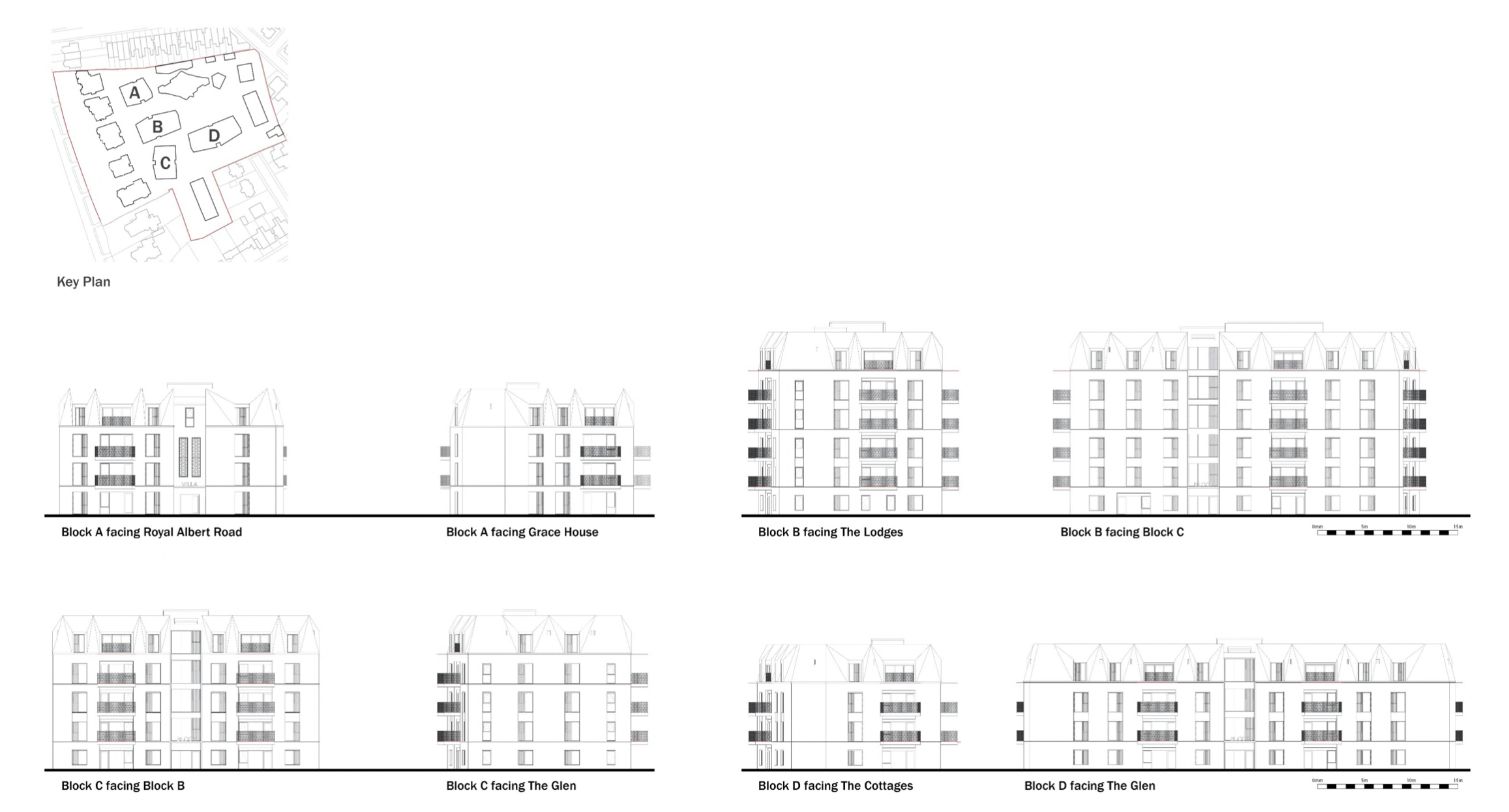 Design of the proposed multi storey blocks. Please note the surrounding houses on Royal Albert side of the boundary (near the 4 storey Block A) are 2 storey. Homes on The Glen near the 5 & 6 storey Blocks C & Block D are 2 storey..